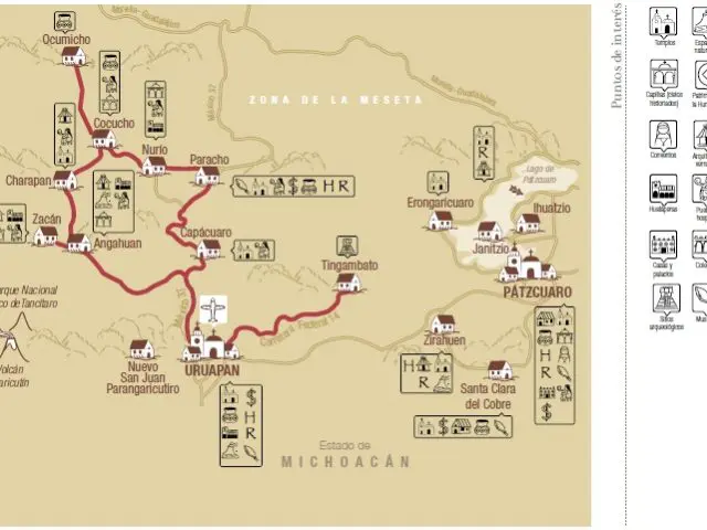 In his concept, the Don Vasco route follows in the footsteps of this illustrious missionary and covers the lake area of Pátzcuaro, the Purépecha plateau and Cañada de los once pueblos, which is extremely attractive, since it is possible to enjoy this heritage of its attractions, its architecture, its curious legends, art, festivals, traditions, the creativity of our artisans and its delicious traditional cuisine with pre-Hispanic roots, in addition to falling in love with the beauty of a region rich in forests, lakes and mountains.