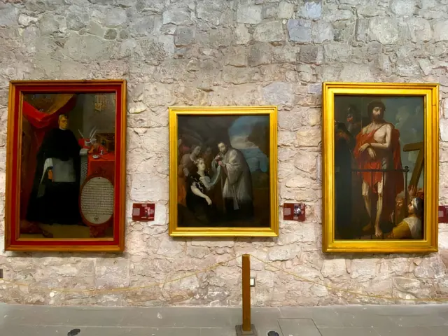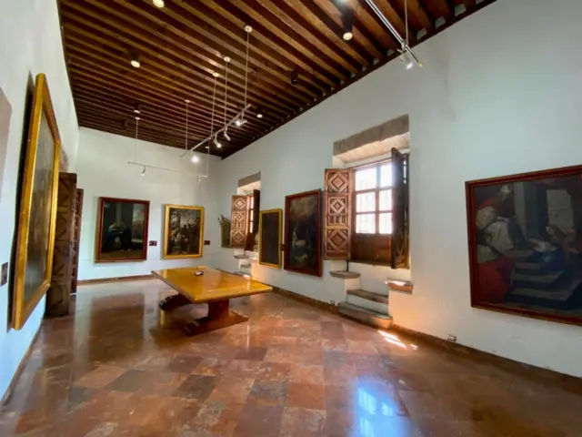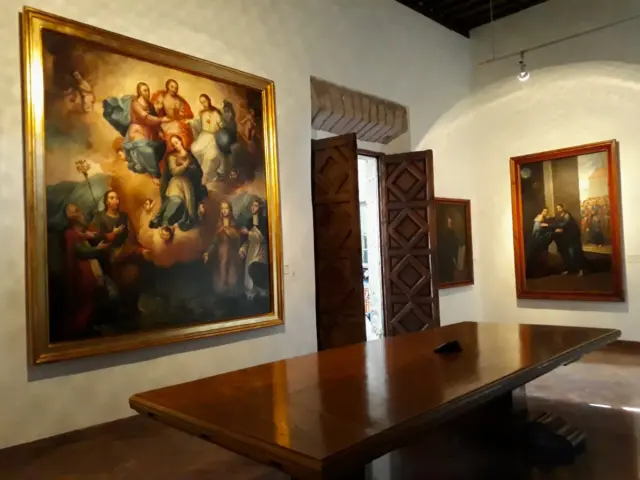 The works are of a sacred nature. This is one of the largest collections from the colonial period, and a collection of New Spain paintings is also on display.