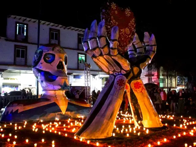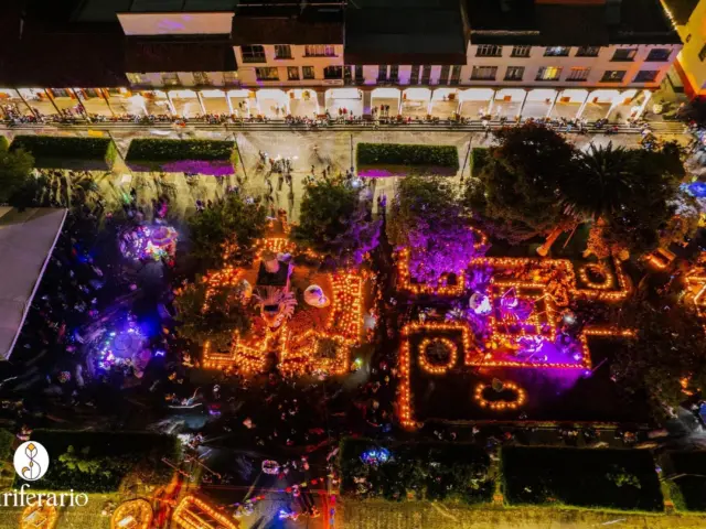 The Night of Candles In Uruapan it is an emblematic celebration that is part of the festivities of Day of the Dead. This event, which takes place on November 1st, is one of the most anticipated times of the year in the city. During this night, the streets, squares and monuments of Uruapan are filled with thousands of lit candles, creating a magical and moving atmosphere. The lighting of candles symbolizes the reception of the souls of loved ones who have passed away, and is a moment of reflection and tribute. In addition to the candles, the celebration includes catrina parades, artistic presentations, live music and gastronomic samples, which enrich the cultural and festive experience.