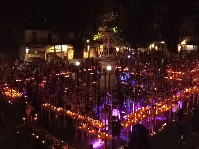 In addition to the impressive sight of thousands of candles lighting up the night, the Night of Candles In Uruapan, it is an occasion for local communities and visitors to come together in an act of solidarity and remembrance. Residents decorate altars with offerings that include flowers, fruit, traditional foods and photographs of the deceased.