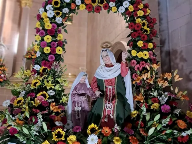 The second section is the choir window in the ajimez style (a window with two openings that is divided vertically into two equal parts by a small column or pilaster called a mullion, on which two arches, generally semicircular, rest). This type of window is also known as a geminated window (an object formed by two equal or different elements placed in pairs). In Catalan, the concept of a biforated window is used. This type of window was widely used in Romanesque and Gothic architecture.