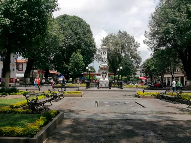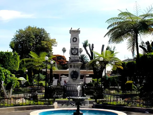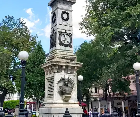 The plaza where the monument to the Martyrs of Uruapan is located today was known as “La Plazuela del Templo Viejo” (The Old Temple Square) and was part of the Franciscan property. After the execution of the Martyrs of Uruapan on October 21, 1865, the idea of erecting a monument in their honor was initiated. Construction officially began on October 21, 1891, and was completed on August 1, 1893. The monument, a five-meter-high marble obelisk designed by Gabriel Guerra, pays tribute to Generals Arteaga and Salazar, Colonels Villagómez and Díaz, and Captain González. The technique used in the construction of the obelisk included marble carving and bronze details, with high-relief busts and commemorative legends.