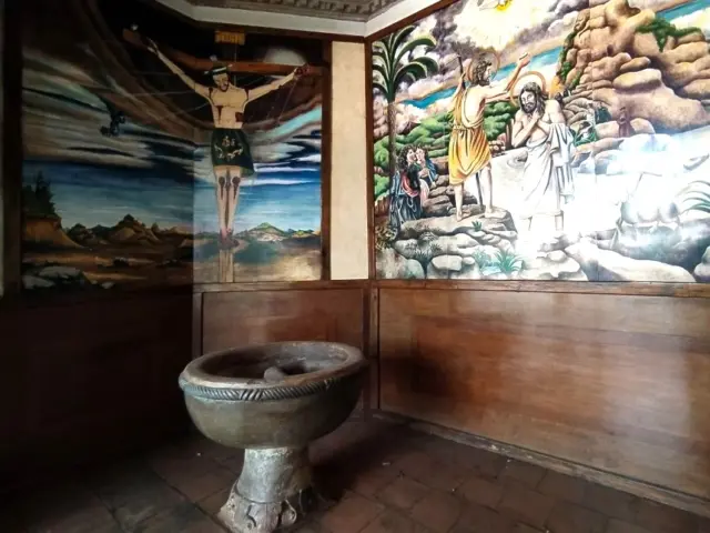 En el interior de la iglesia hay vestigios de murales que se encuentran en mal estado.