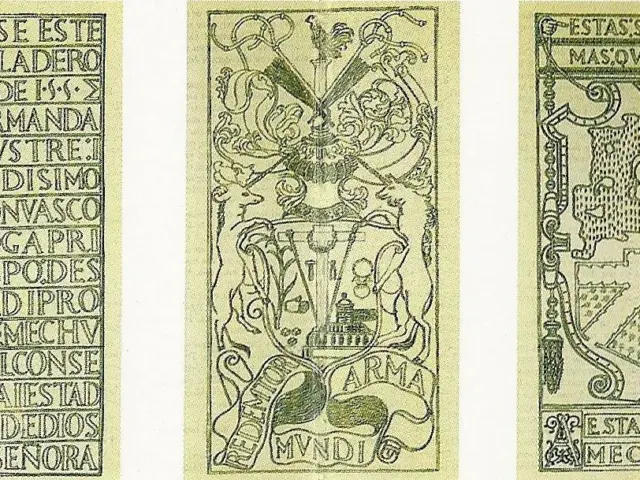 Escudo de Quiroga: En la parte trasera se grabó el escudo personal de Don Vasco con la inscripción: “VaCs D Qviroga Primvs EpisCopvs” (Vasco de Quiroga Primer Obispo).