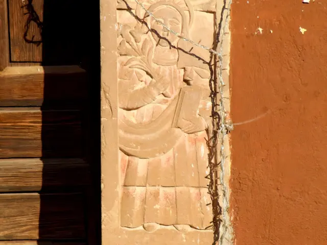 La fachada de la capilla es sencilla y de paramento liso, con una portada de marcado corte indigenista. El acceso es de arco en medio punto, desplantado sobre pilastras toscanas. En los nichos de las pilastras se encuentran las imágenes de José y María, con María llevando la vara de azucenas y el libro de oraciones. La fachada culmina en un frontón triangular y una espadaña de un solo vano.