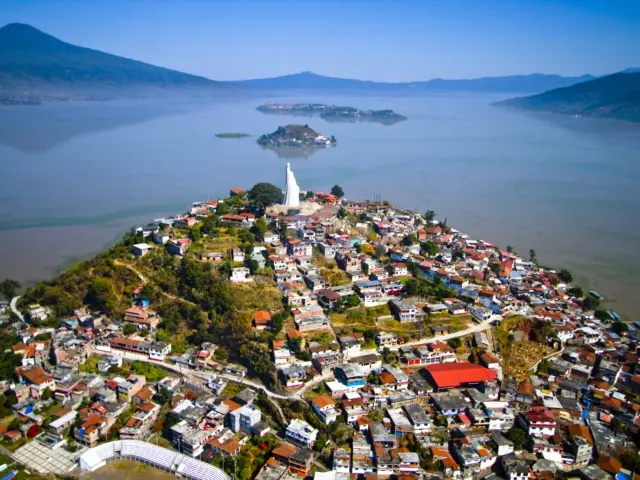 Uno de los principales atractivos de la región, es el viaje en lancha hasta esta isla, cuyo nombre significa “cabello de elote” que es la más grande e importante del lago. En ella se pueden admirar y adquirir gran variedad de artesanías, saborear exquisitos platillos típicos en sus numerosos restaurantes atendidos por los mismos habitantes de la isla y al llegar hasta su parte más alta es posible visitar el interior de la enorme estatua de Morelos.