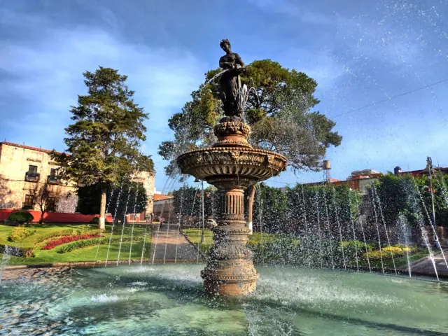 Es la frontera perfecta. Al llegar aquí, dejas atrás la traza colonial de la Avenida Madero para encontrarte con el aire fresco de los jardines y el sonido del agua. Pero este lugar no es solo un límite geográfico, es un espacio diseñado para el “buen vivir” desde el siglo XVIII y el escenario de una hazaña de amor.