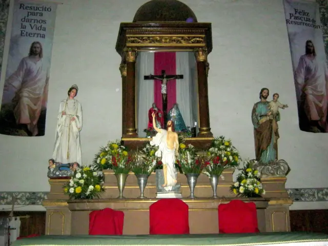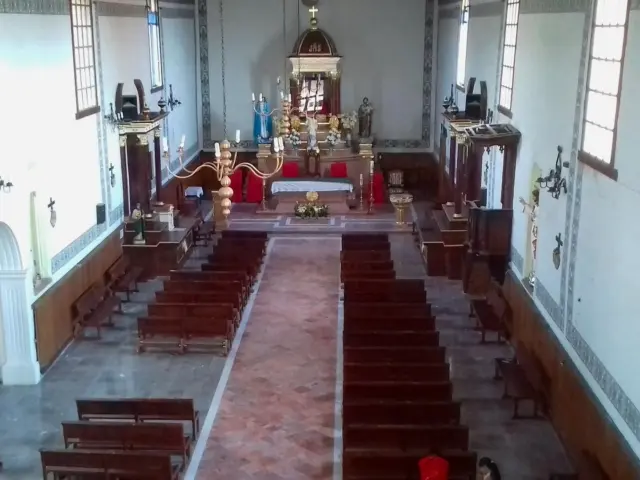 El interior de la parroquia es amplio y cuenta con una nave central. Las paredes están decoradas con frescos y pinturas religiosas que narran escenas bíblicas. El altar mayor es una obra maestra de la talla en madera, con detalles dorados y policromados.