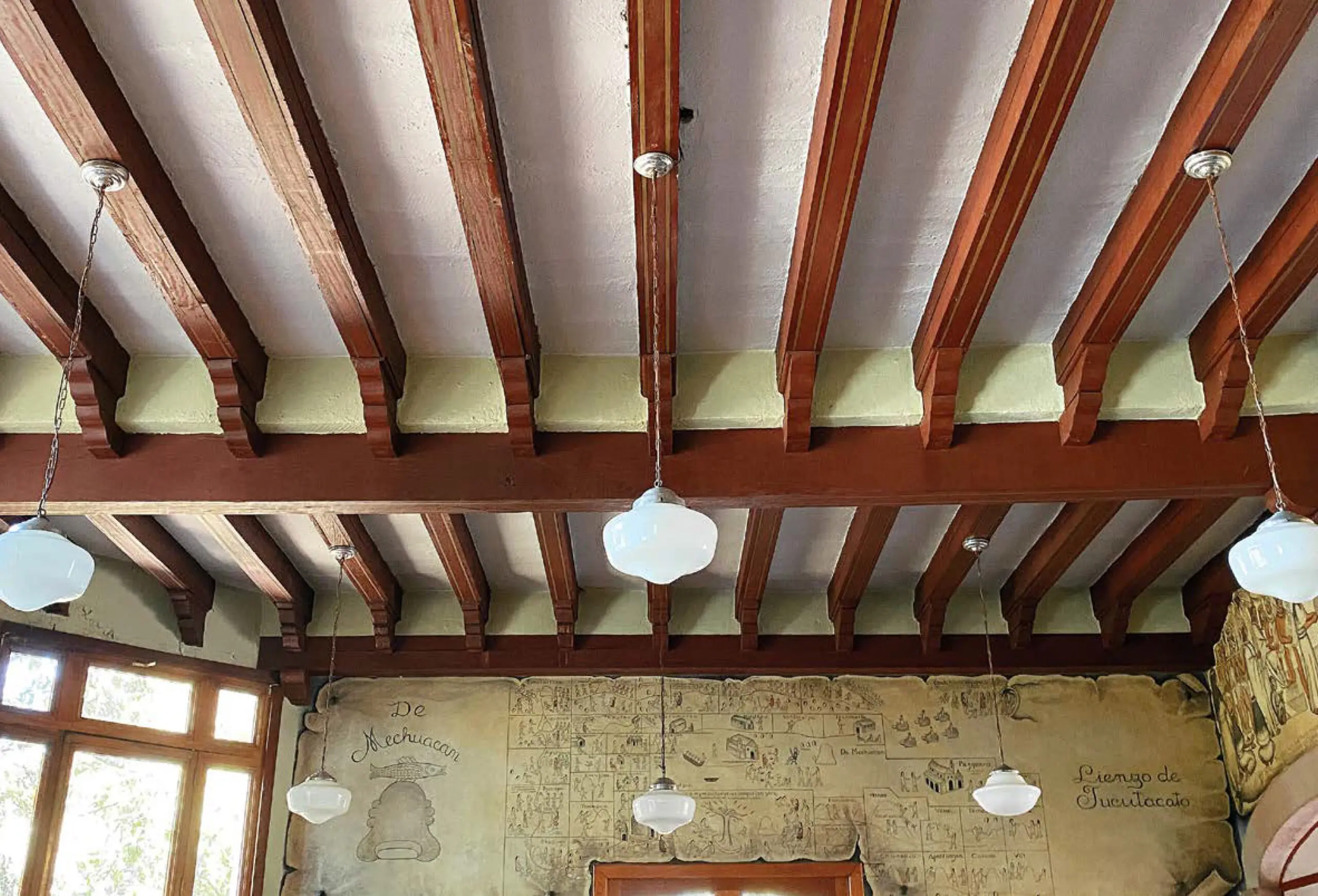 Mapas y Botánica: Los muros también exhiben mapas estilizados de Michoacán y flora local, reflejando la obsesión del General por el conocimiento del territorio y la educación rural.