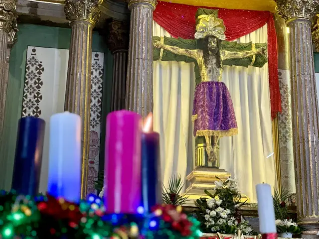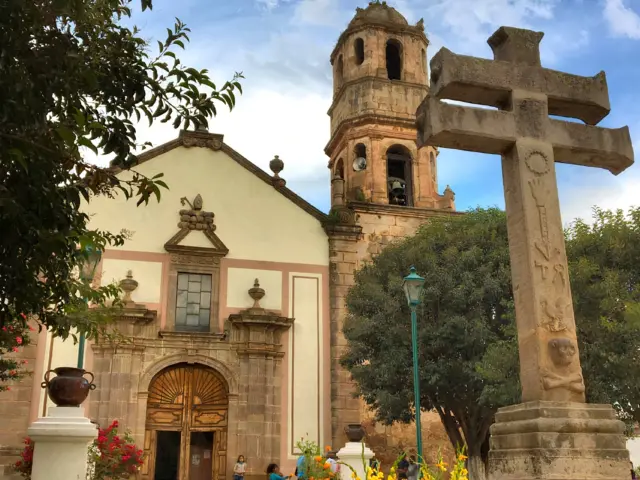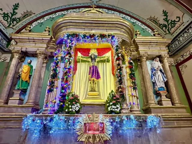 El ciprés alberga la talla del Cristo de la Exaltación, magnifica talla en piedra estucada con policromía, únicamente comparable al Cristo del Humilladero en Pátzcuaro.