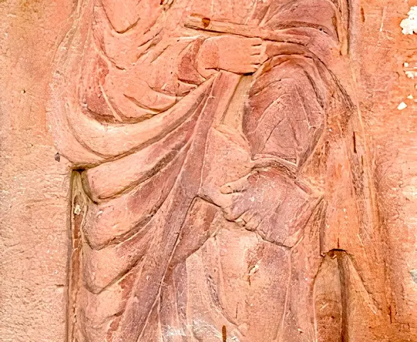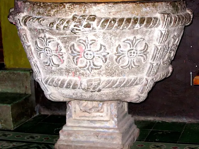 El altar mayor es una obra maestra de la talla en madera, con detalles dorados y policromados. En el centro del altar, se encuentra una imagen de San Pedro en su trono, flanqueada por columnas salomónicas que sostienen un dosel ornamentado.