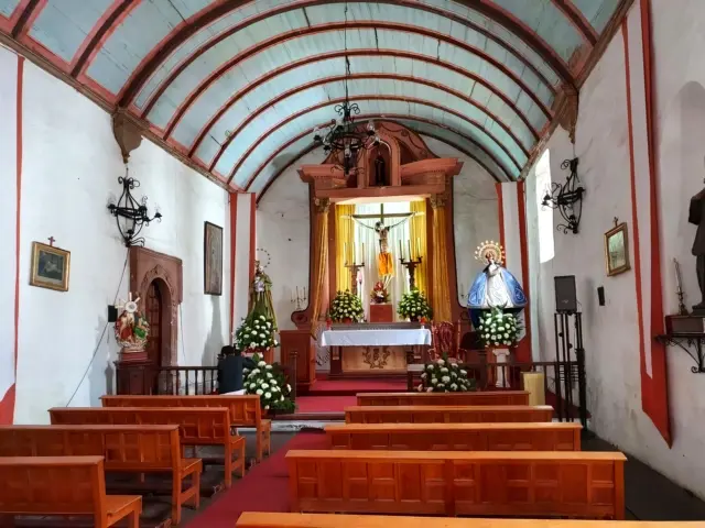 Este pequeño templo está dedicado a la Virgen de Guadalupe y su portada del siglo XVI presenta un estilo renacentista.