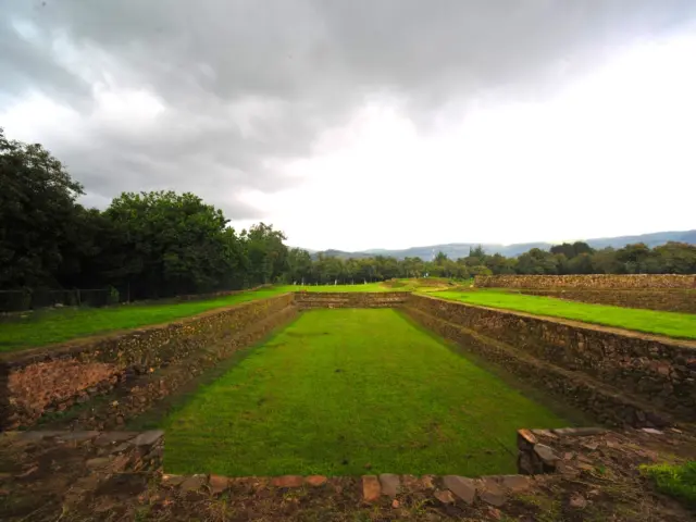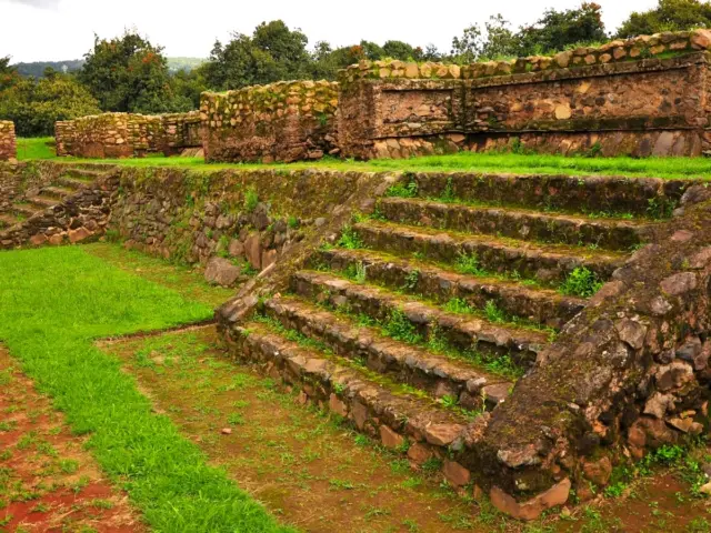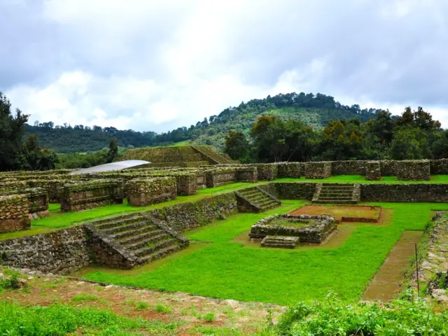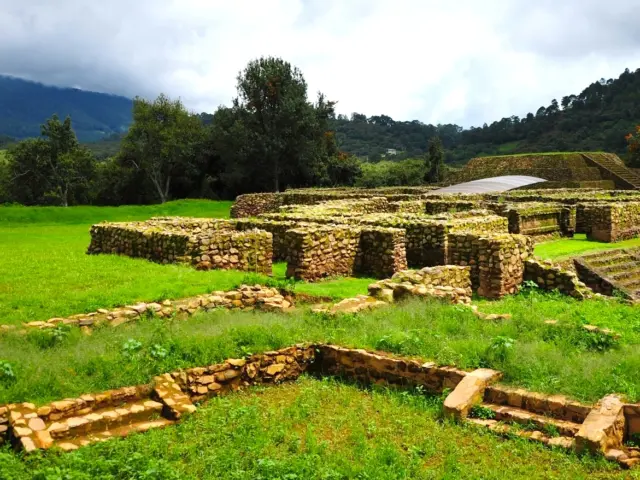 En la historia de la zona podemos definir claramente dos etapas; en la primera, que arranca en el 450, se inicia el poblamiento de este centro ceremonial. El asentamiento fue habitado por grupos que poseían una economía productora de alimentos, basada fundamentalmente en la agricultura y complementada con la caza y la pesca. En esta fase los constructores regularizaron el terreno para formar una plataforma artificial sobre la que se construyeron los basamentos para los templos, así como algunas construcciones de carácter civil destinadas a la clase dirigente, junto con numerosas chozas para el pueblo. La segunda etapa comprende del 600 al 900 y en ella es evidente la influencia teotihuacana. Para explicarnos la presencia de los rasgos de la gran metrópoli es necesario hacer una breve semblanza de su cultura.